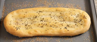 Step5:- Ab Greased tray me bran seed daalke bread ko tray me rakhenge , phir dough pe glaze marenge phir sesame seed aur Nigella seed uper daalenge , phir proffing hone ke liye rakh denge.