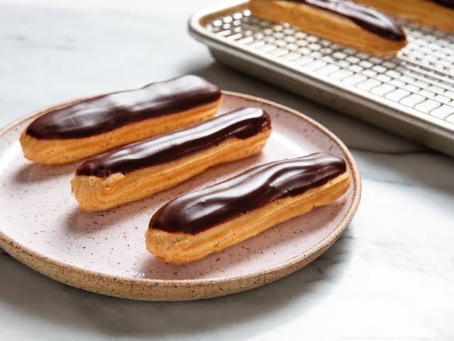 1. For the éclairs and profiteroles, preheat the oven to 400 F and line two baking trays with parchment paper.