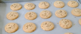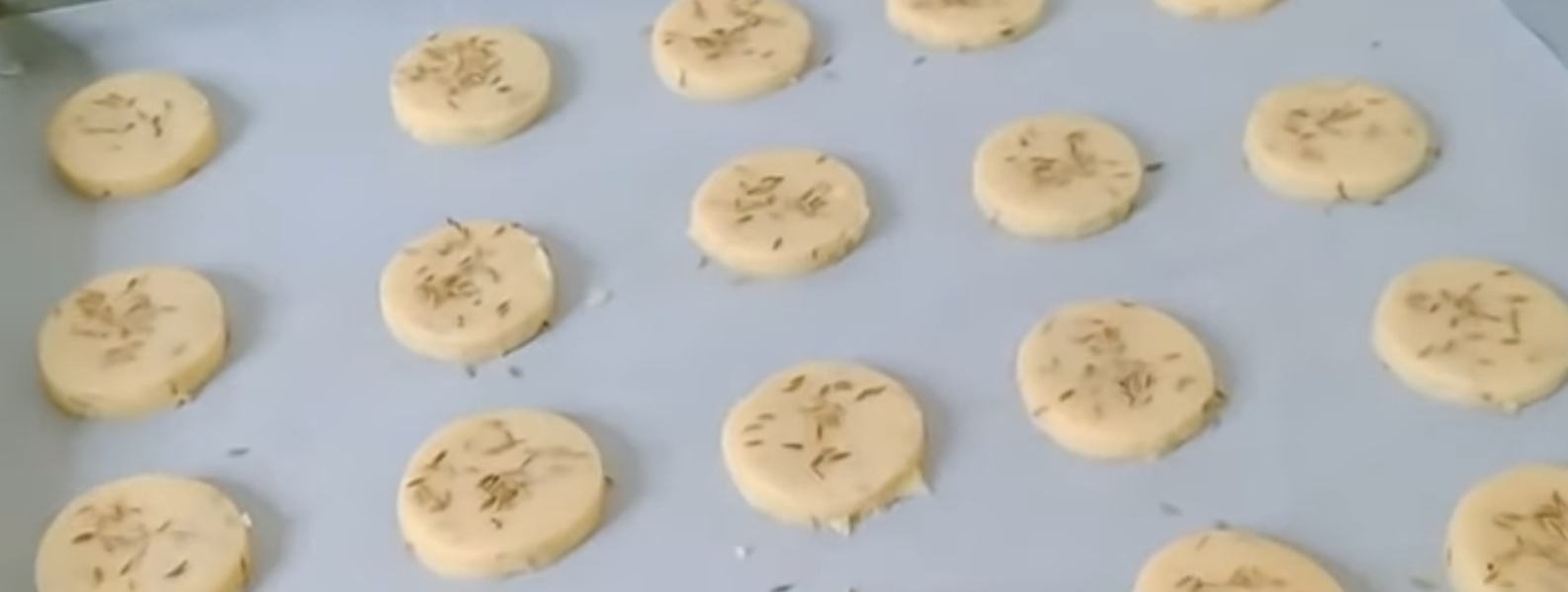 Ingredients:- Butter , icing sugar , flour , milk powder , milk , baking powder , baking soda , jeera( cumin) , salt .
