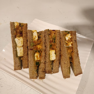 Ingredients:- Slice bread , butter, green red chutney ,paneer , onion , Capcicum , makhni sauce , paneer masala powder , chilli flakes , mix hurbs , salt ,