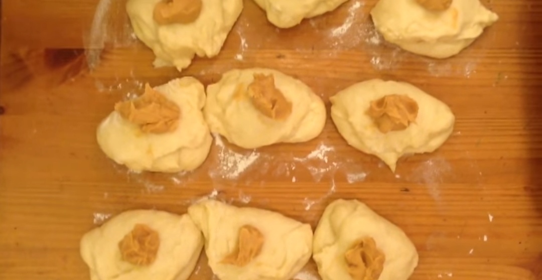 Step3:- Now divide the dough and make a ball shape and give rest 5-10 minutes , then punch the dough and put peanut butter and again make a round ball shape, and keep in Greased tray.
