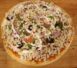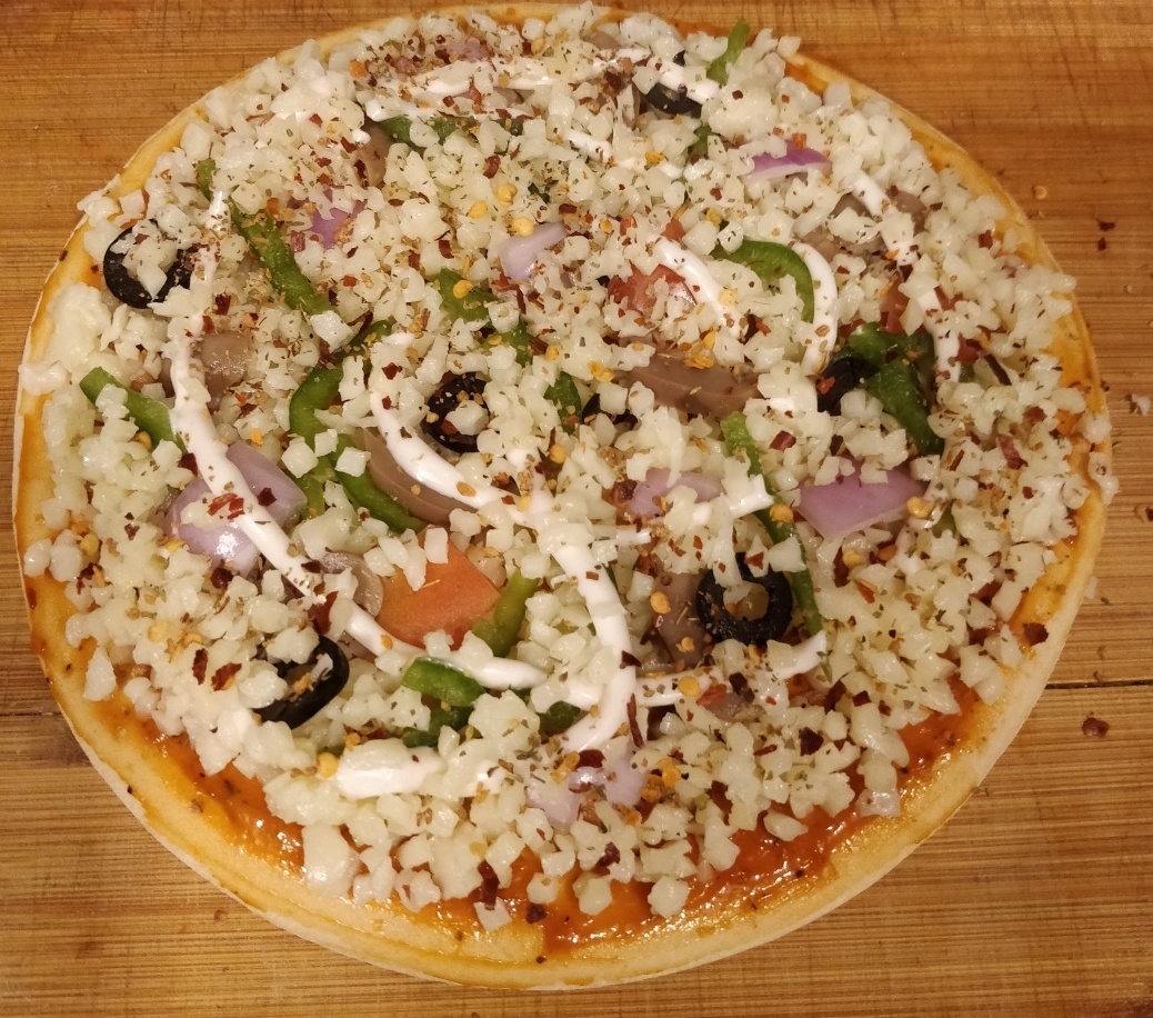 • Pizza base + pizza pasta sauce + white cheese dressing souce.